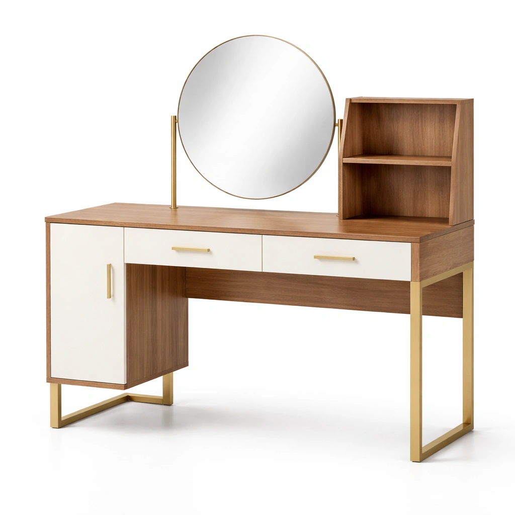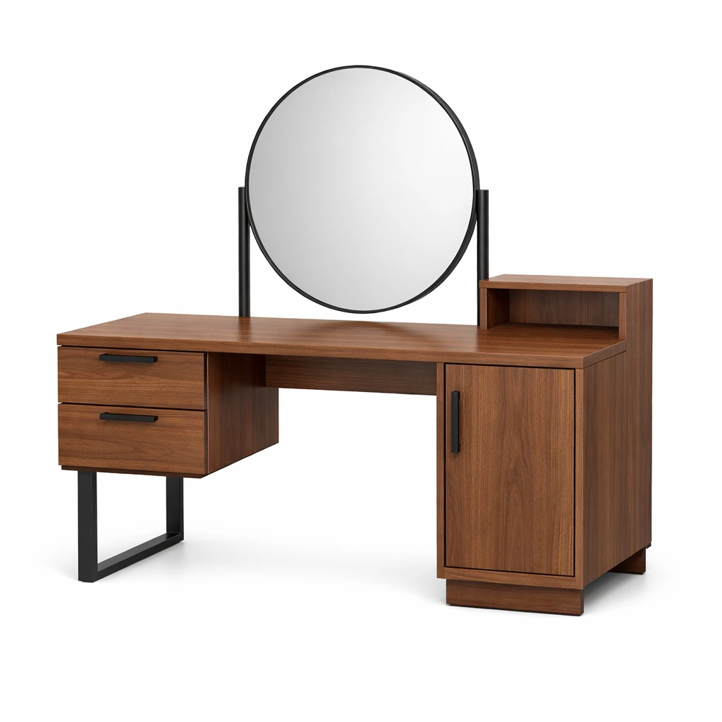 Schminktisch Holzfurnier Runder Spiegel